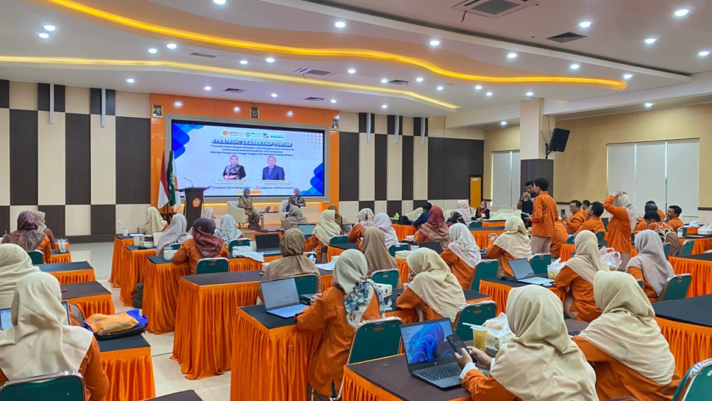Selanjutnya, Prof. Dr. Aisyah Endah Palupi memaparkan strategi pengembangan perguruan tinggi menuju keunggulan dan daya saing global. Ia menyoroti target peningkatan akreditasi program studi unggul sebesar 15 persen, penguatan kepangkatan dosen melalui jabatan fungsional, serta pembenahan tata kelola perguruan tinggi. Aspek tata kelola tersebut mencakup penyusunan dan implementasi Statuta, Rencana Strategis (Renstra), Visi, Misi, Tujuan, dan Sasaran (VMTS), Sistem Penjaminan Mutu Internal (SPMI), Rencana Operasional, serta Rencana Pembangunan Jangka Panjang (RPJP).